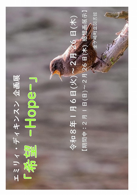 - 金ケ崎図書館情報 【展示 2026年1月】エミリィ・ディキンスン企画展「希望―Hope―」