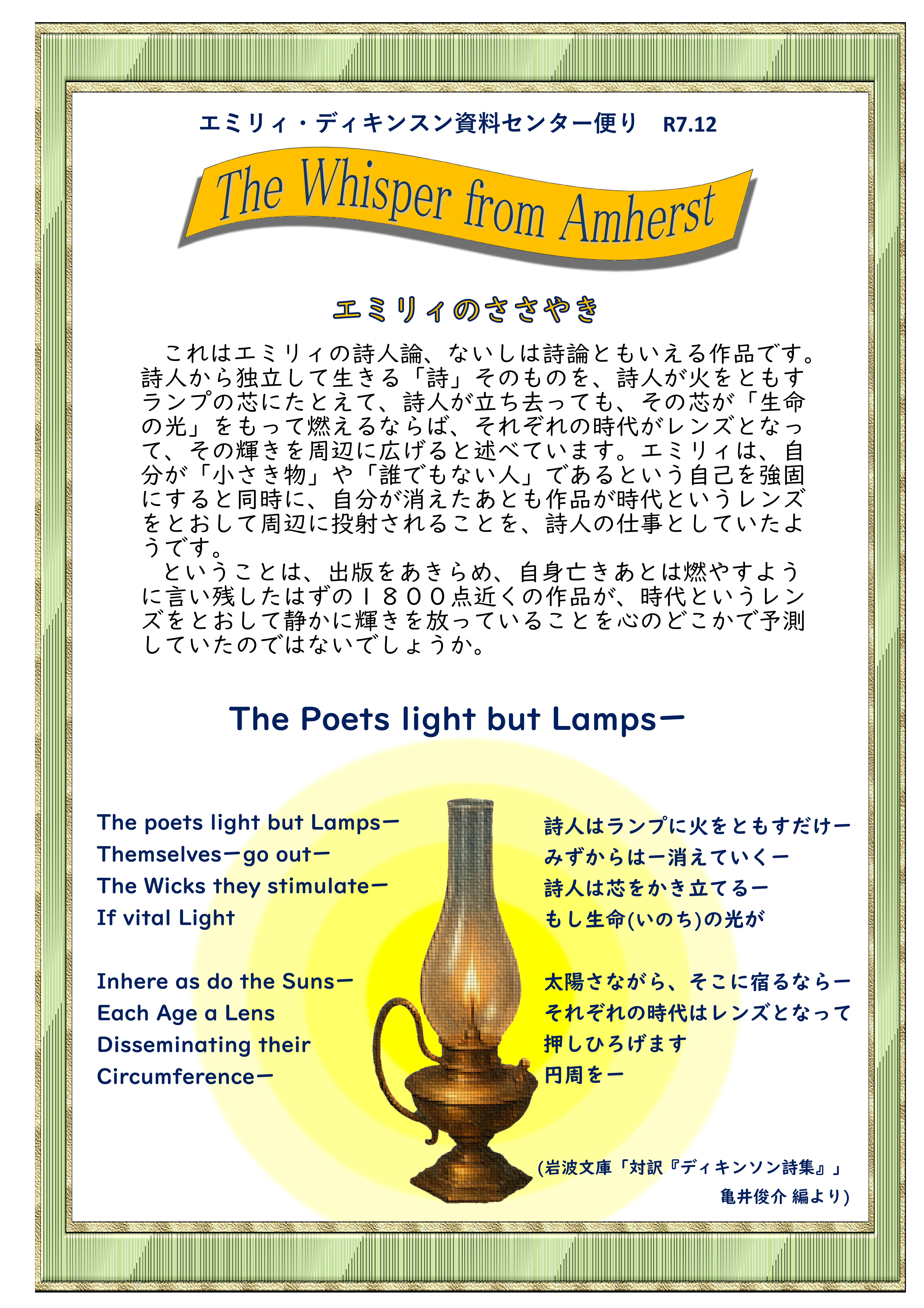 2025(令和7)年12月の「エミリィ・ディキンスン資料センター便り」