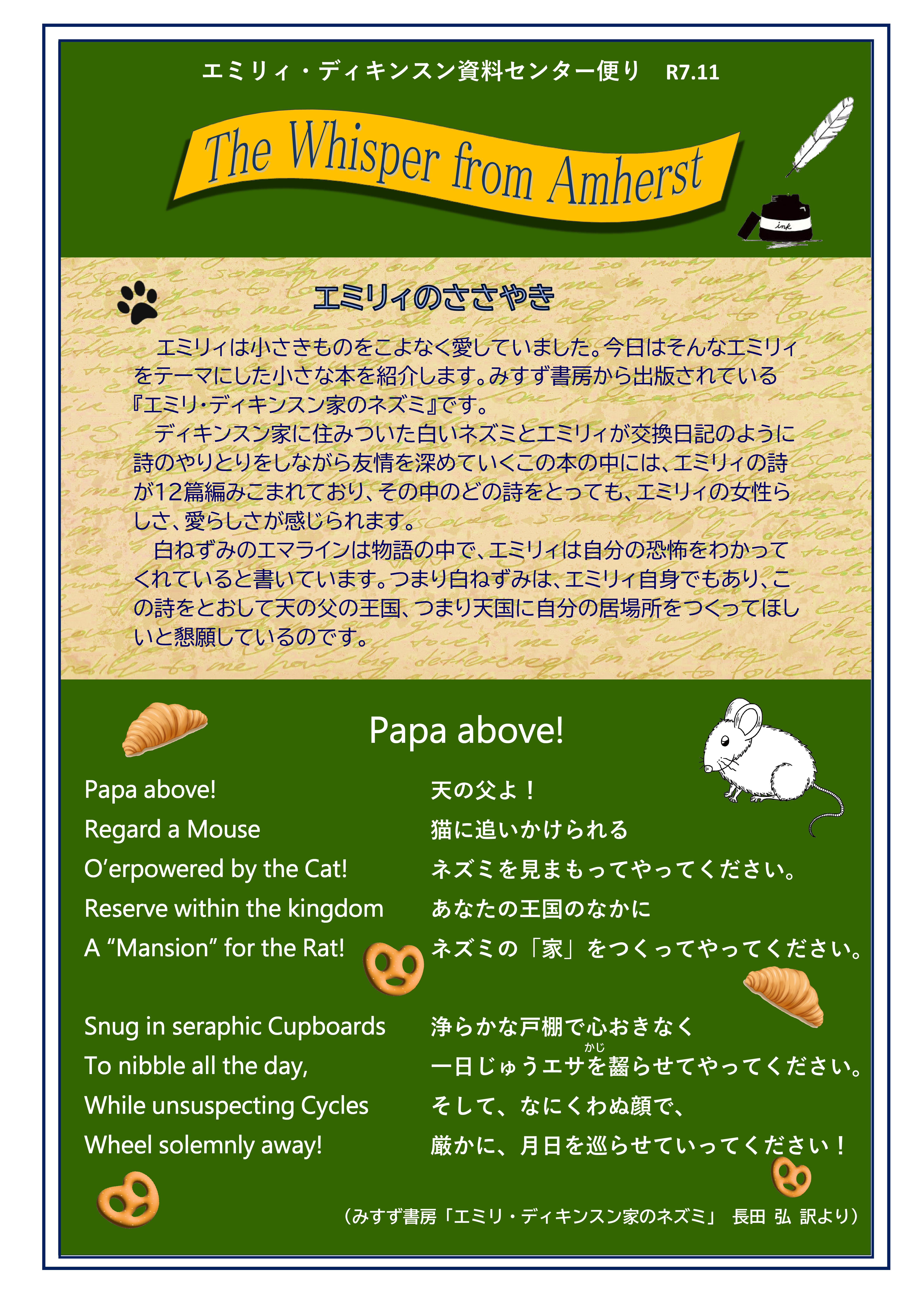 2025(令和7)年11月の「エミリィ・ディキンスン資料センター便り」